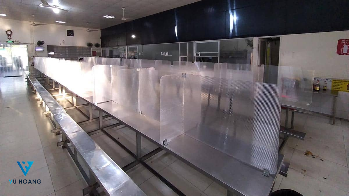 Trong bối cảnh dịch bệnh diễn biến phức tạp, khi vấn đề vệ sinh và sức khỏe cộng đồng trở thành mối quan tâm hàng đầu, việc đảm bảo một môi trường ăn uống an toàn là yếu tố vô cùng quan trọng của các quán ăn cũng như khu vực ăn uống tại các khu công nghiệp. Chính vì lẽ đó, vách ngăn chống giọt bắn không chỉ là một giải pháp thiết yếu để phòng ngừa lây nhiễm mà còn là yêu cầu cấp bách, giúp các cơ sở kinh doanh vừa tuân thủ quy định phòng dịch, vừa củng cố vững chắc niềm tin của thực khách.